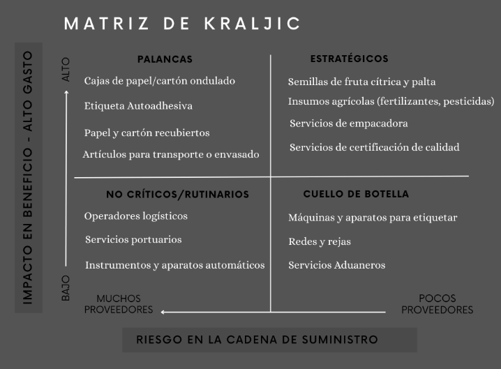 Para Westfalia Fruit Perú S.A.C., los insumos juegan un rol clave en la sostenibilidad de la cadena de suministro. Su clasificación por cuadrante permite entender el nivel de criticidad, impacto y riesgo que representa cada uno en las operaciones de la empresa.