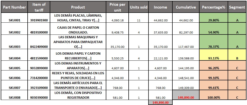 🔴 Segmento C: 50% de los SKUs, solo 5% del valor. — Redes, envases y artículos menores. Se manejan con flexibilidad: pedidos puntuales o stock mínimo.